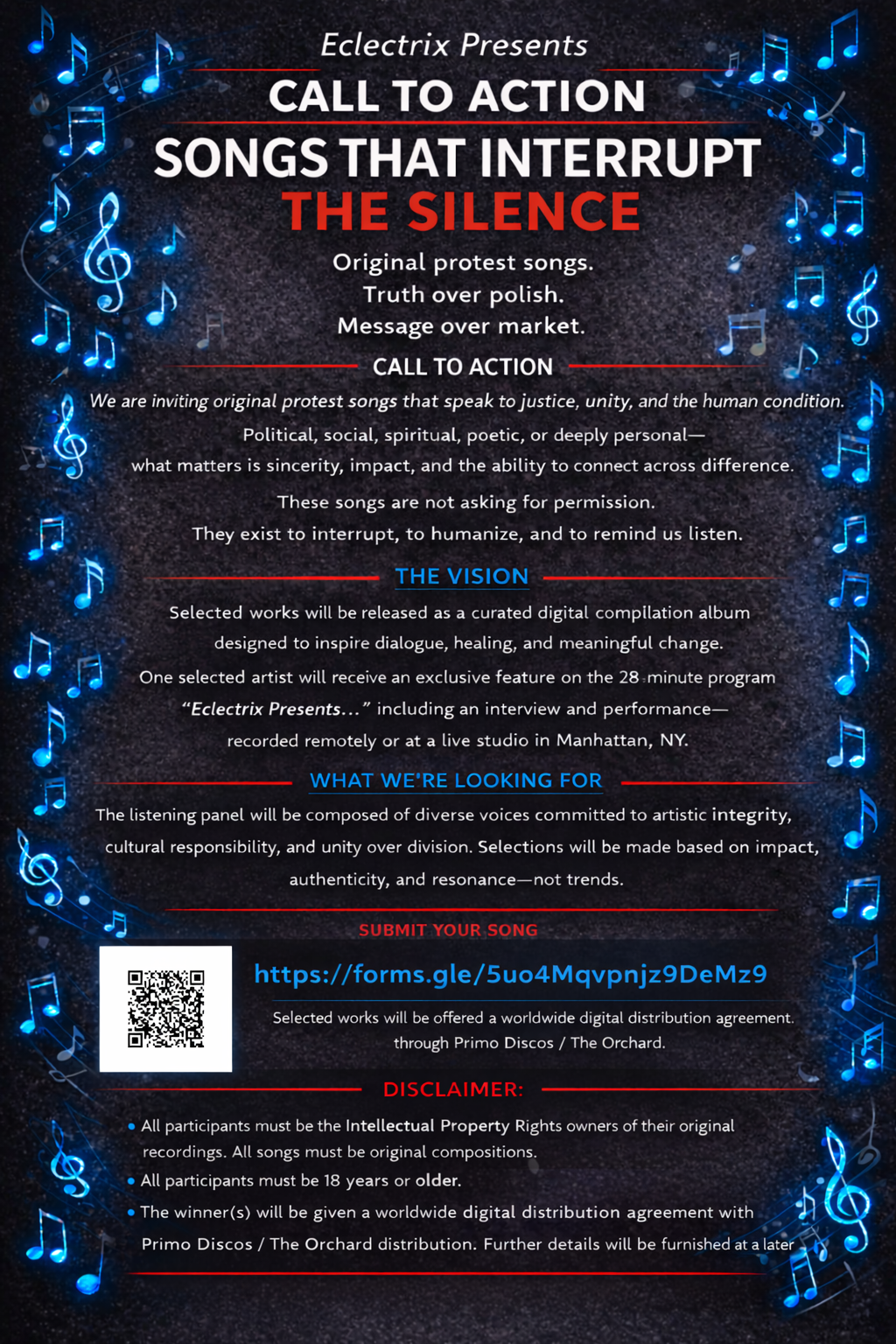 If your song speaks truth and calls us forward, we want to hear it.